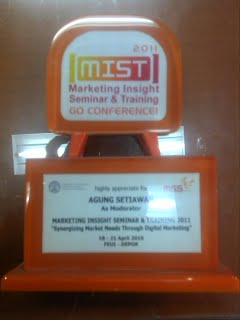 Menjadi Praktisi di Dunia Marketing tak pernah terbesit di benak saya, tapi hari itu saya seperti sedikit mendapat pengakuan di dunia Marketing, mungkin hal ini buat orang-orang sukses diluar sana adalah hal yang sangat kecil, tapi buat saya ini adalah hal yang sangat Special. dengan background yang tak pernah mengenyam pendidikan tinggi hal ini sangat luar biasa. Ya saya menjadi moderator dalam seminar marketing yang diadakan oleh FEUI “Marketing Insight Seminar dan Training” 2011.